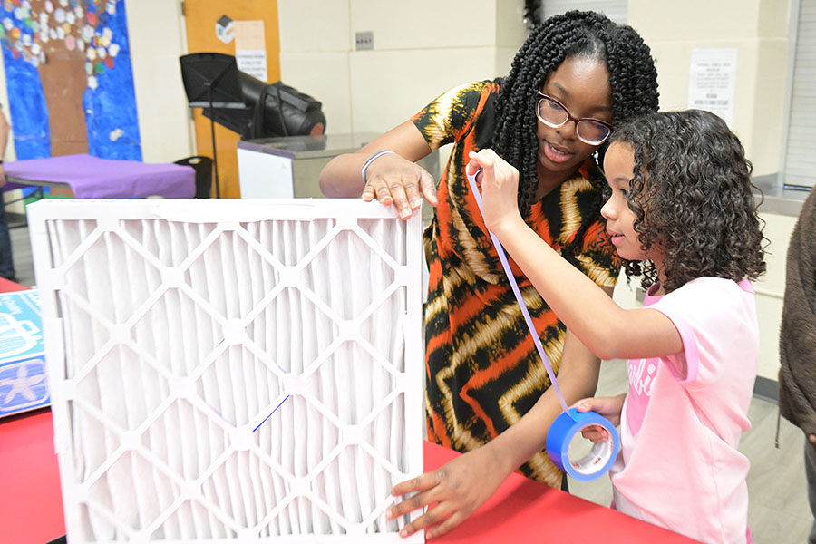 Holladay had a special guest speaker, Eniola Shokunbi, an 8th grade scientist and inventor, who created an air filter that has brought her recognition and awards. She showed 4th graders how to assemble them for their classrooms. This filter clears the air of particles, making clearer air to breathe.